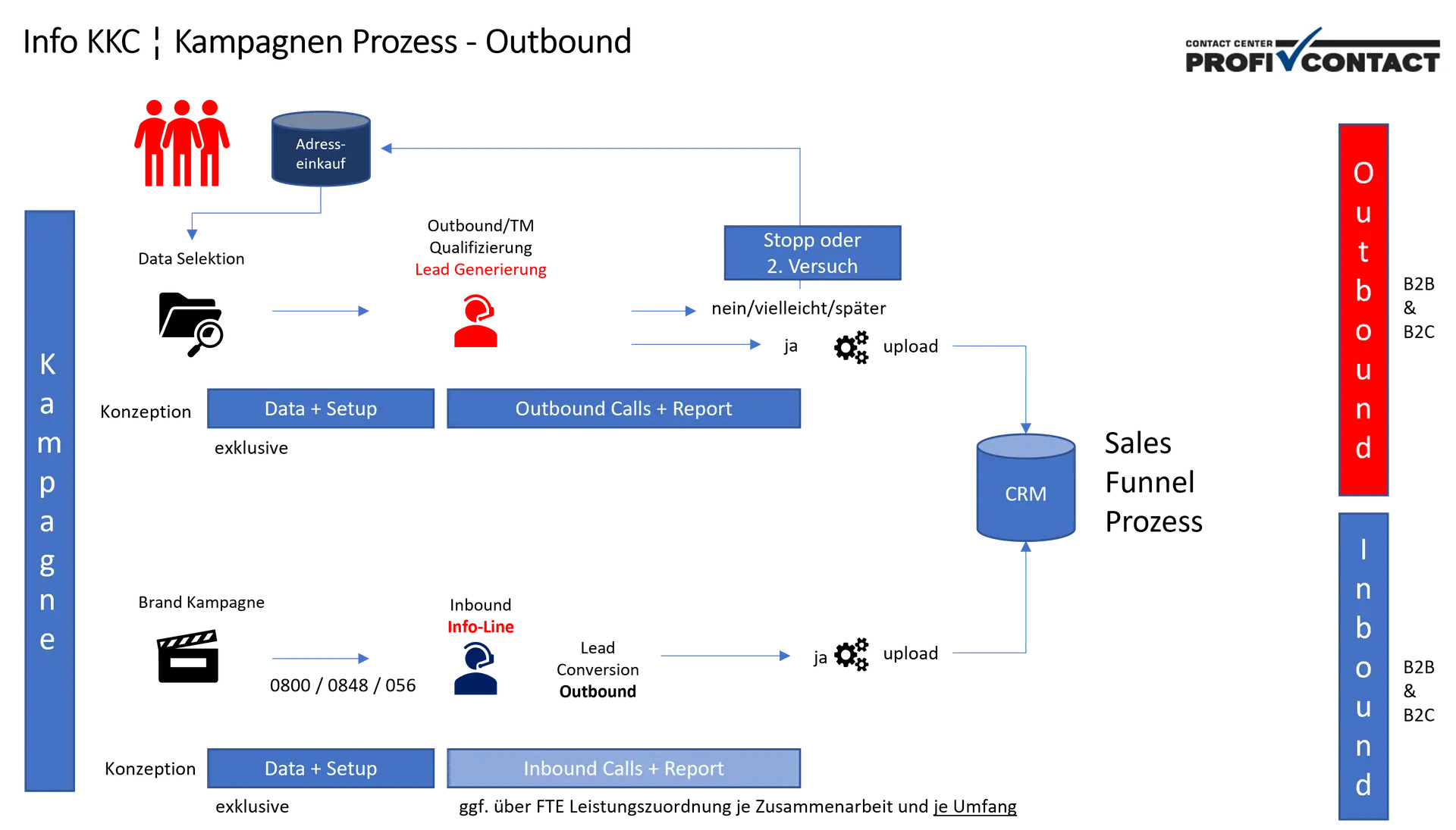 Setzen Sie bei Ihren Kampagnen auf Telemarketing. Diese Möglichkeit hat sich sehr bewährt, ist direkt und effizient und generiert hervorragende Quoten. Mit der richtigen Konzeption, Gesprächsskript und einer guten Gesprächsführung ist es ein Garant für erfolgreiches Dialog Marketing mit hoher Zielerreichung. Dieses Instrument eignet sich für einen schnellen und effektiven Einsatz, kann kurzfristig aufgesetzt und als ergänzendes oder umfassendes Modul ihrer Multichannel Strategie eingesetzt werden.